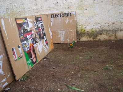 Hace justo un año el propio alcalde se comprometió a adecentar la zona, pero esa promesa ha quedado simplemente en sembrar 4 plantas junto a las tumbas y en colocar el día de Todos Santos unas indecentes vallas publicitarias (tal y como se ve en la imagen) para separar la zona donde reposan los cuerpos del vertedero. “Siempre se excusan en que no hay dinero, pero dar una mano de pintura a las paredes y recoger la basura no cuesta nada”